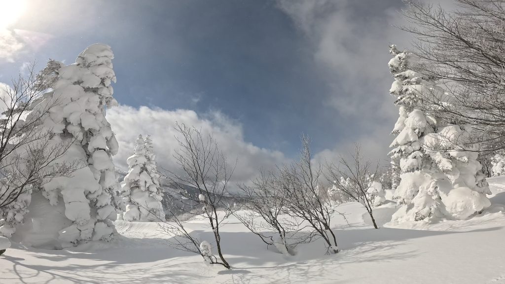酸ヶ湯温泉から60分ほど登ると雪をまとったアオモリトドマツが広がります。樹氷とはまた違う表情を見せ、大きさと美しさに迫力があります。