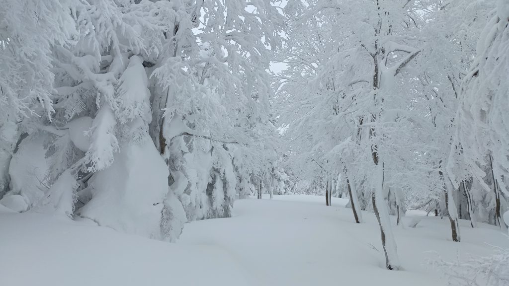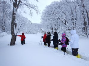 今年もふっかふかの雪を楽しむスノーシューハイキングの季節がやってきます。酸ヶ湯は八甲田山中の標高925メートルに在るので、低山を散策するよりもより冬山を感じることができます。水墨画のような世界のぶな林や雪の中に佇む神秘的な地獄沼などの美しい景色を楽しめます。天候によっては視界がほとんど無いホワイトアウト状態になることもありますが、ガイドと一緒に歩くので安心して参加できます。雪が積もったらぜひ酸ヶ湯温泉へ。そして温泉と上質なパウダースノーを満喫して下さい。