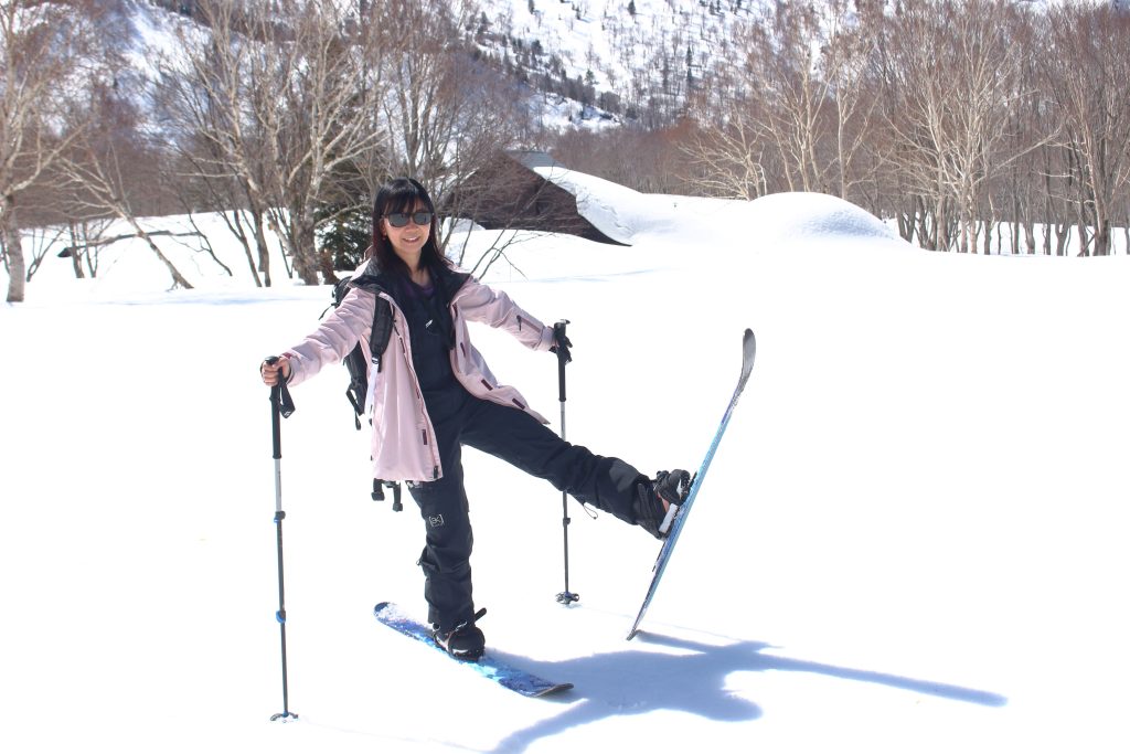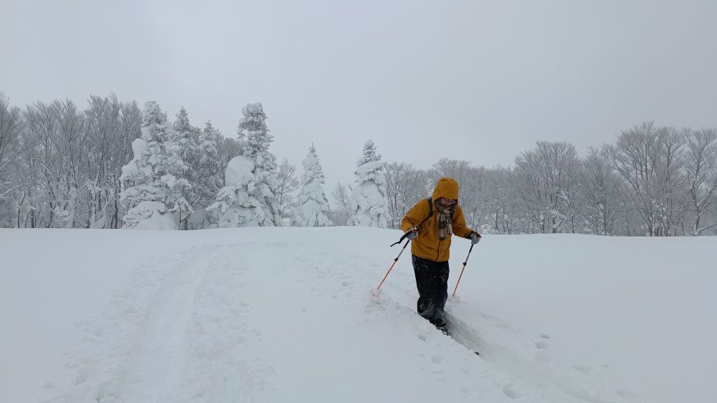 平坦なコースだけではなく、登って滑るバックカントリーコースもあります。